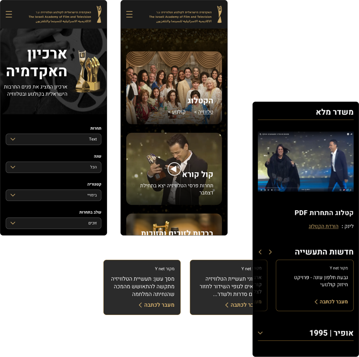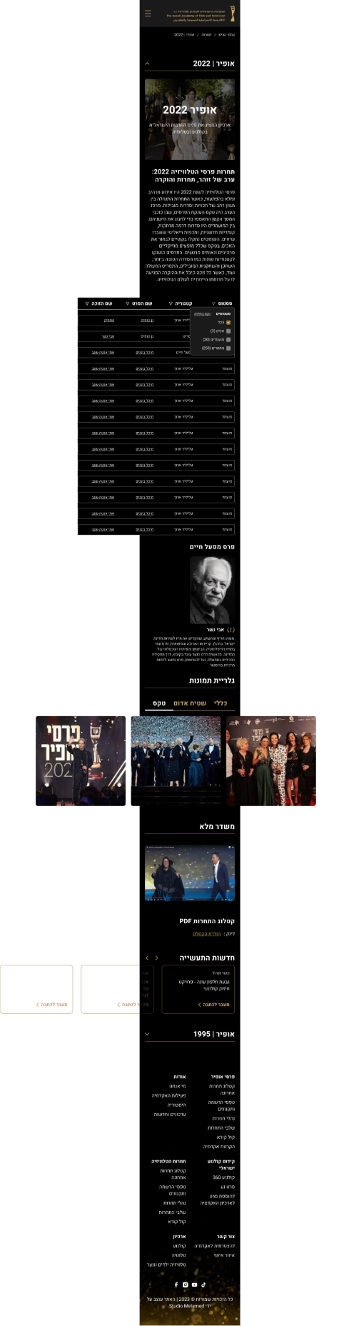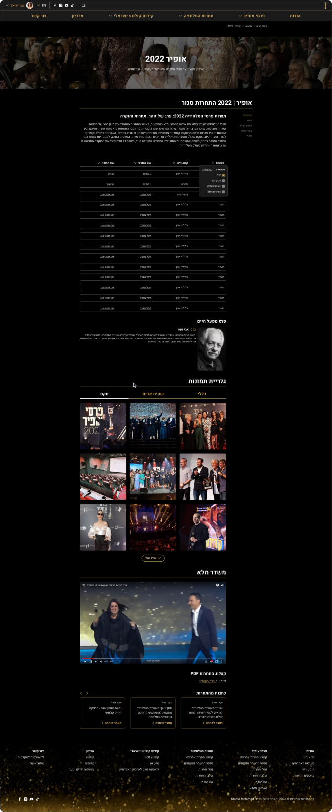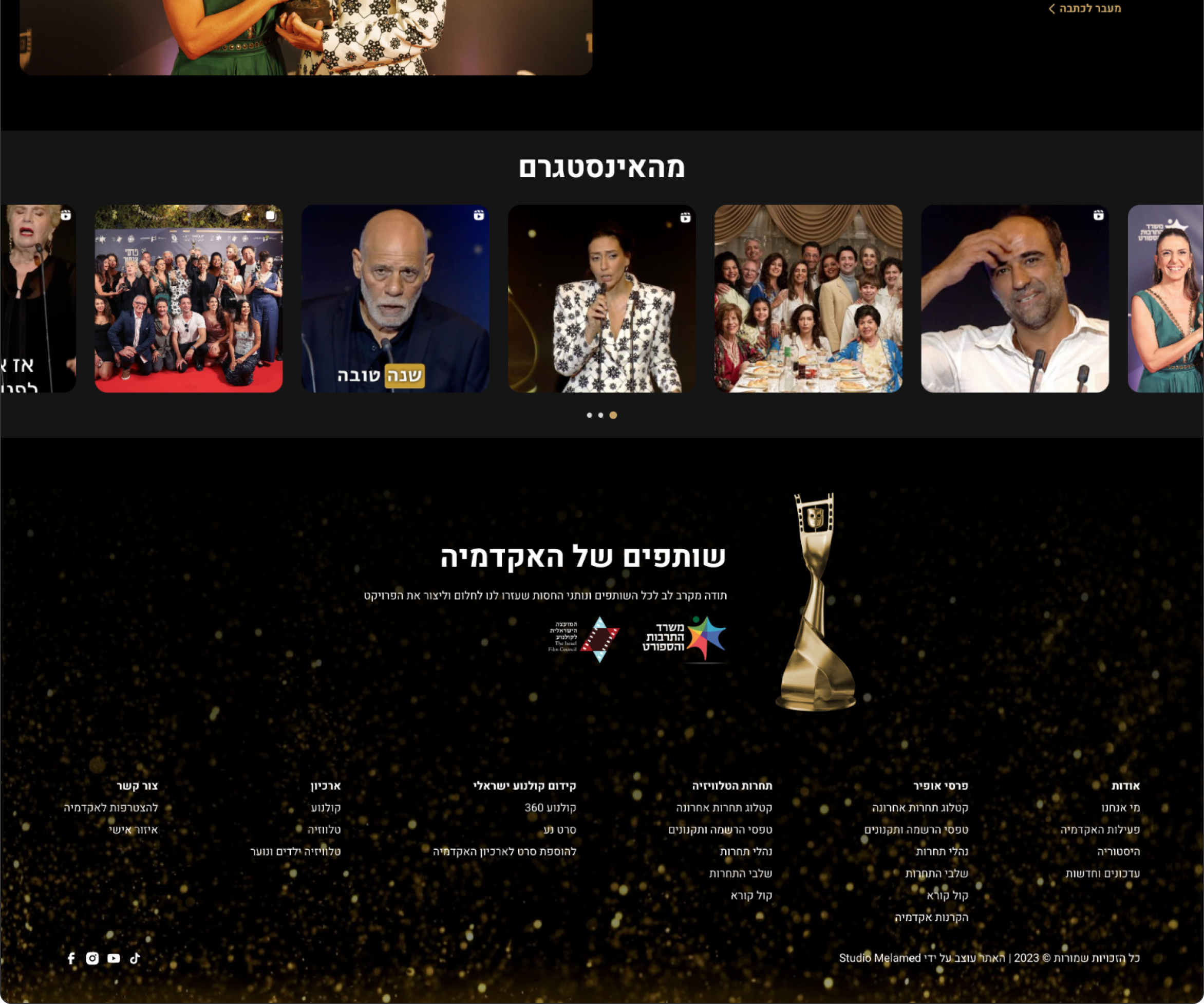 The Israeli Academy of Cinema and Television A.R. Established in 1990 with the aim of promoting, encouraging, marketing, and distributing local cinema in Israel and the world, and to celebrate the wide and extraordinary variety of talents and cinematic abilities of Israeli creators in all fields of filmmaking.